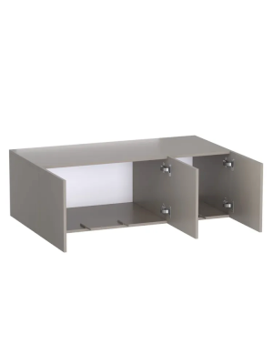 Антресоль для шкафа имеет три дверцы, открывающиеся в стороны. За ними расположено место для хранения вещей (одежды, постельного белья или принадлежностей). Все дверцы открываются с помощью механизма от нажатия (push to open). Дверцы с доводчиками, оборудованы соответствующими накладными и полунакладными петлями.