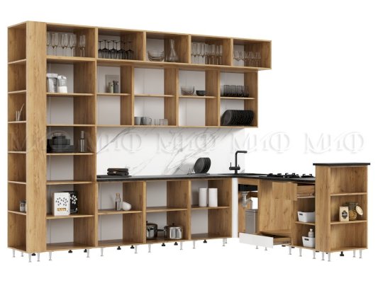 Угловой кухонный гарнитур Техно-5 3,2х2,24 м (Миф) продается в интернет-магазине mebelin-noginsk.ru по цене 73 474 руб. Есть доставка по Ногинску и Московской области. Возможность подъема на этаж и сборки уточняйте у менеджера по телефону 8(800)505-27-11.